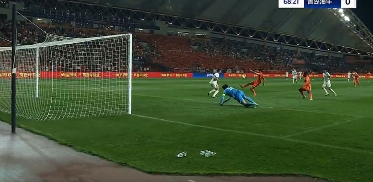 侯永永补射失良机!第68分钟,约尼查前场断球后直塞,恩里克禁区内劲射被牟鹏飞扑出,侯永永面对半空门补射打偏,错失良机!↓