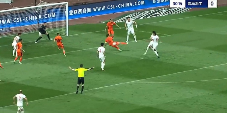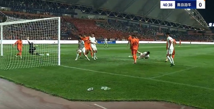 迪力穆拉提门线救险!第41分钟,席尔瓦主罚角球开出,冯伯元抢点甩头攻门,迪力穆拉提门线前将球解围!↓