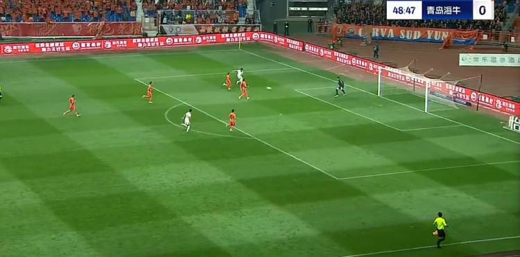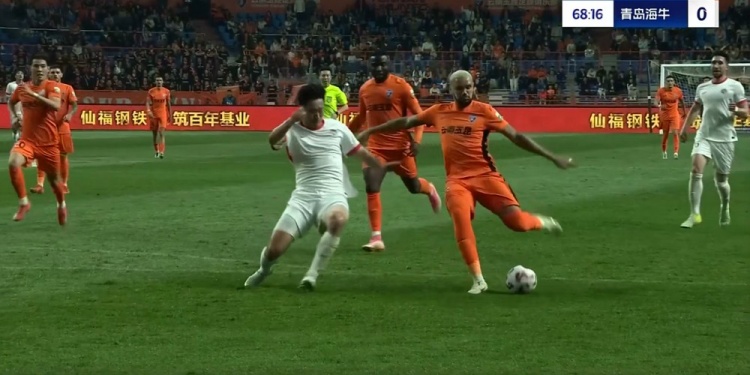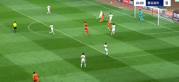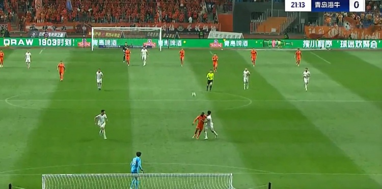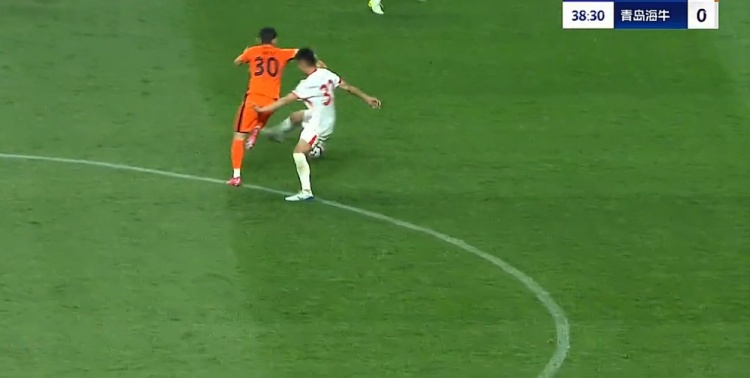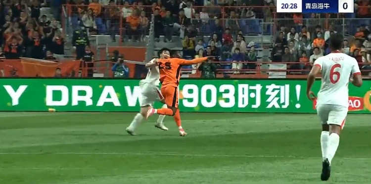 第21分钟,奥斯卡反击即将形成单刀被徐宏杰拉拽倒地,裁判吹罚犯规并对徐宏杰出示黄牌,通过VAR裁判维持原判。↓