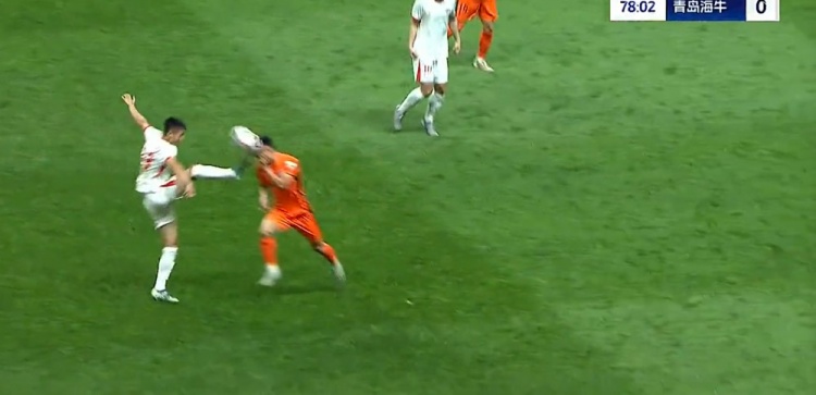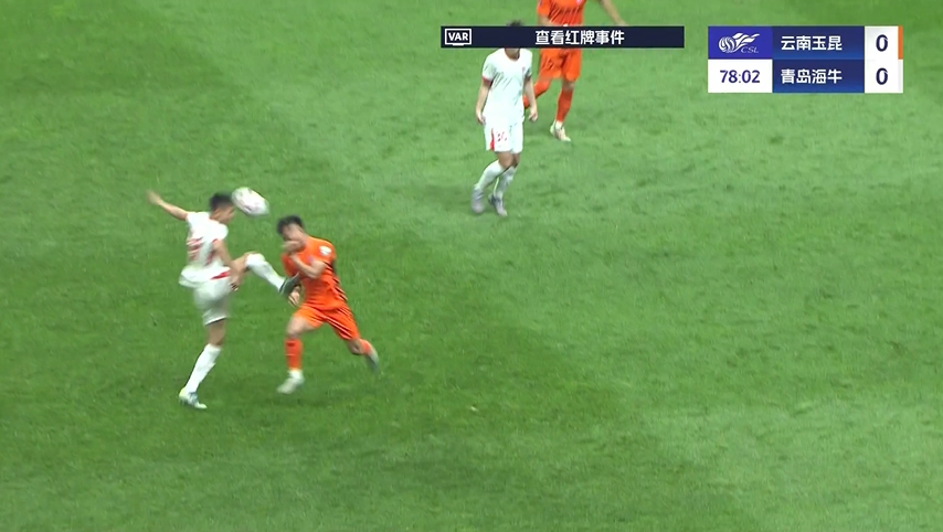 玉昆多打1人!宋文杰飞踹直红!第78分钟,宋文杰抬脚过高飞踹徐宏杰面部,通过VAR,裁判直接出示红牌罚下宋文杰!↓