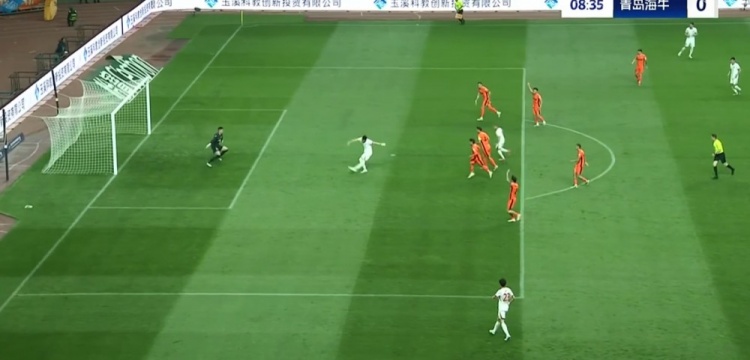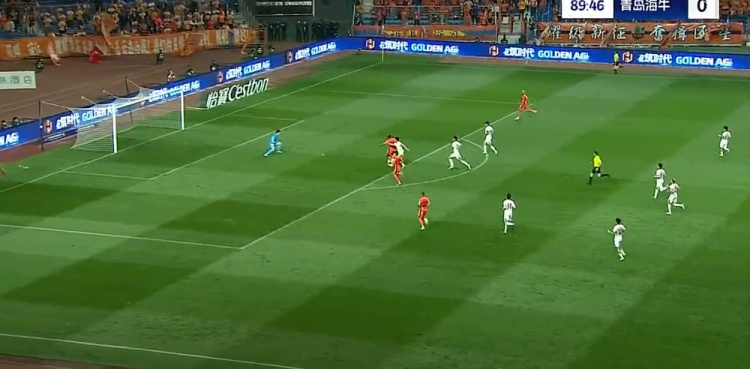 第9分钟,席尔瓦直塞,冯伯元禁区内单刀扫射打偏,此球也越位了。↓