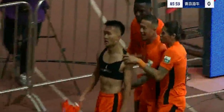 玉昆绝杀!徐宏杰头球破门,韩子龙助攻!第86分钟,韩子龙左路传中落点精准,徐宏杰人群之中抢点头球破门,随后脱衣庆祝染黄,云南玉昆1-0青岛海牛!↓