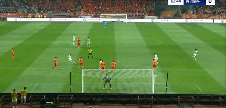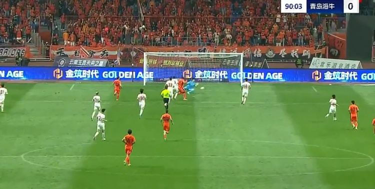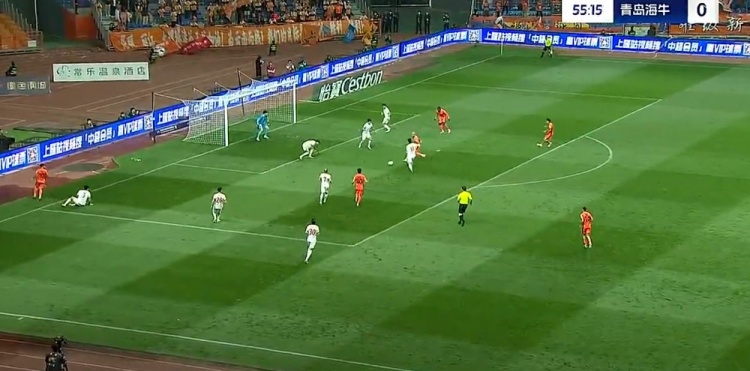 第56分钟,约尼查左路低平球传中,恩里克禁区内打门角度太正被牟鹏飞化解。↓
