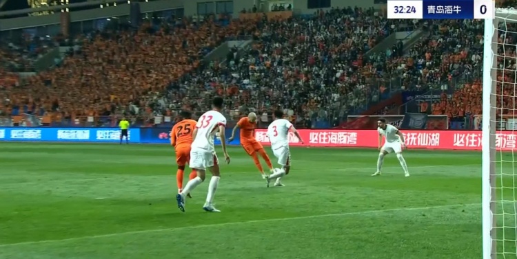 第33分钟,侯永永禁区内顺势凌空做球,恩里克抽射踢飞。↓