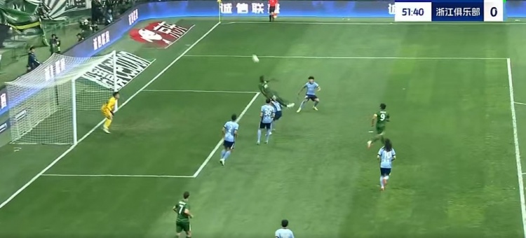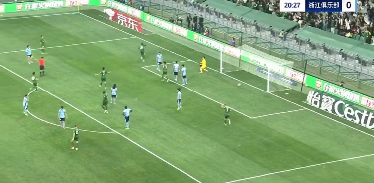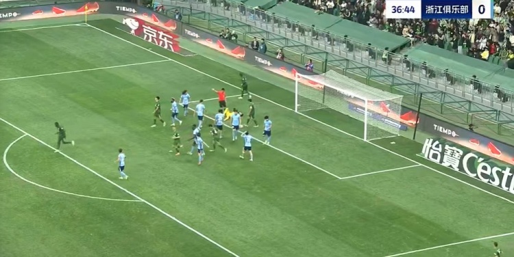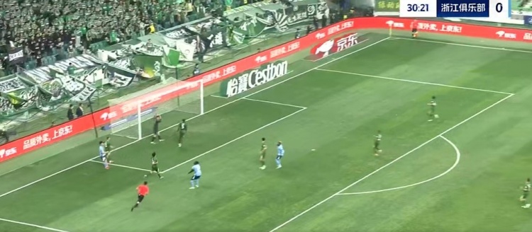 第88分钟,王钰栋右侧下底传中被解围,左侧浙江队再送传中,布彭扎鱼跃头球冲顶破门,但边裁举旗示意越位在先进球无效,比分仍为2-0↓
