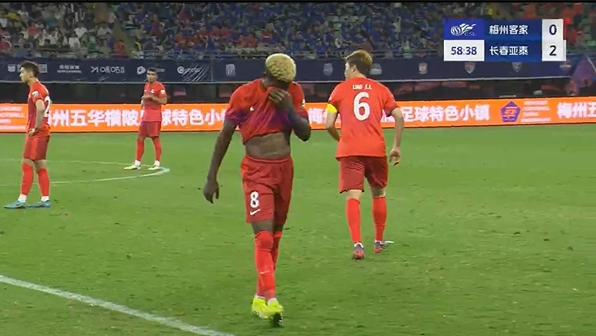 全场比赛结束,梅州客家1-3长春亚泰。