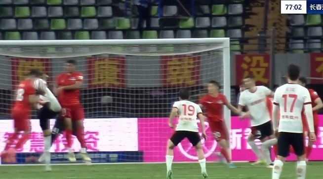 第90+7分钟,饶伟辉左路传中,季胜攀门前抢点扳回一球,梅州客家1-3长春亚泰。↓