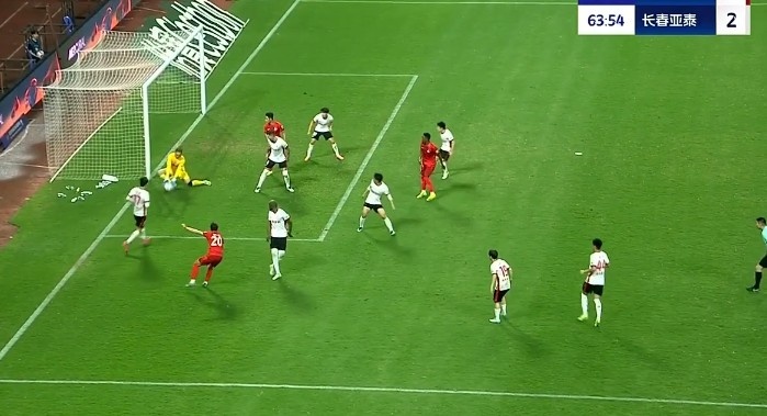 第69分钟,亚泰前场任意球直接打门擦着立柱出了底线。↓
