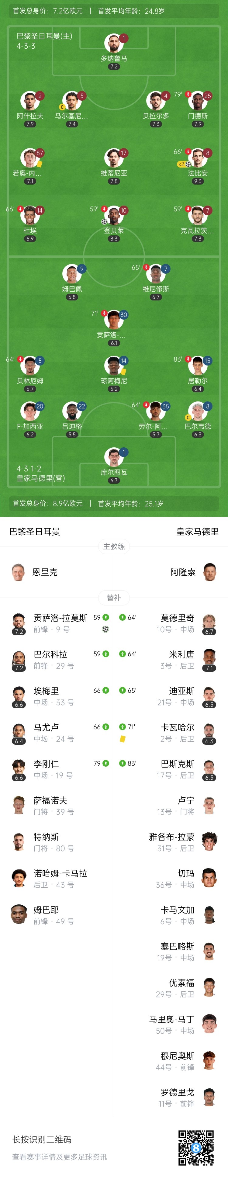 【双方首发及换人信息】