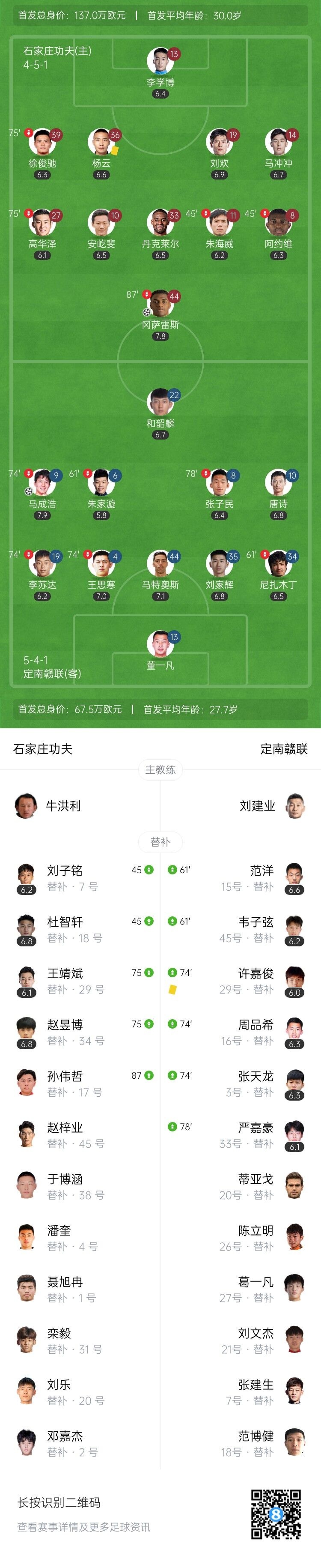 中甲-石家庄功夫1-1定南赣联 哈德松-冈萨雷斯破门马成浩扳平