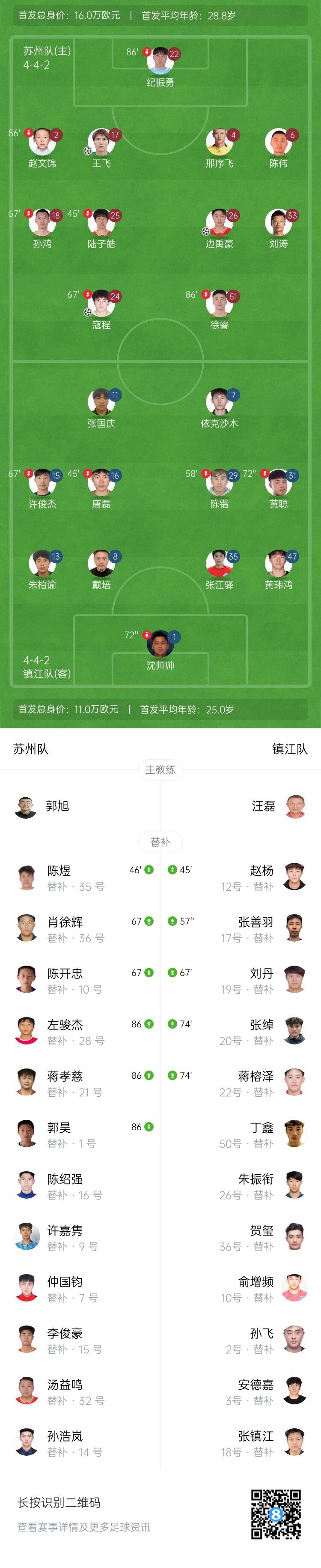 江苏联-苏州4-0镇江继续不败 镇江吞6连败 王飞&寇程等4人破门