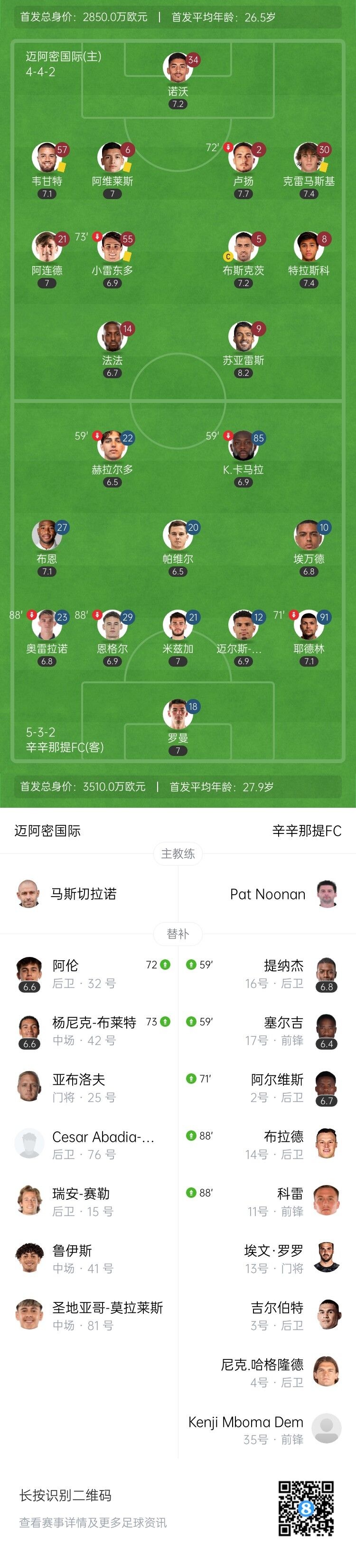 美职联-迈阿密国际0-0辛辛那提FC 苏牙造险迈阿密补时险被绝杀