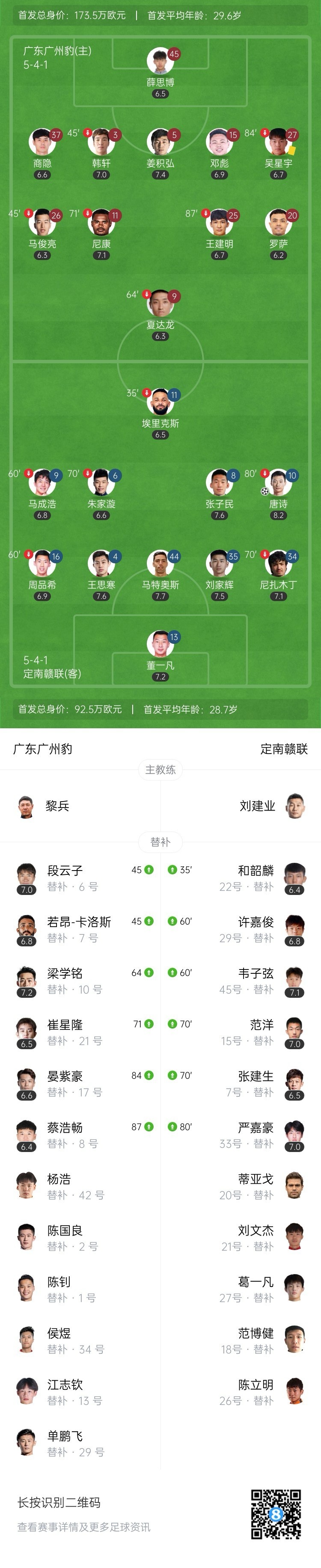 第35分钟,定南赣联外援埃里克斯在一次拼抢中受伤离场,和韶麟替补登场。↓