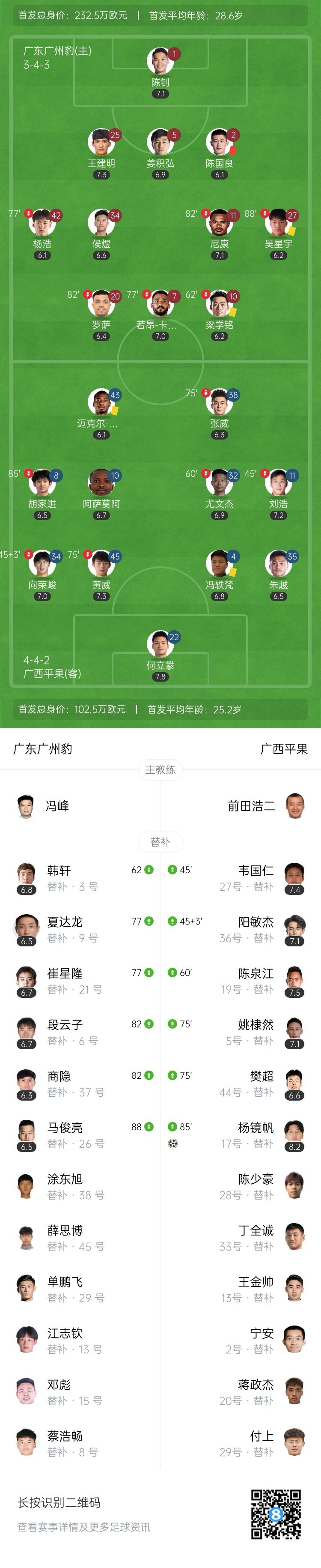 全场比赛结束,广州豹0-1不敌广西平果。