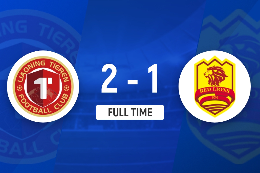 全场比赛结束,辽宁铁人2-1青岛红狮。