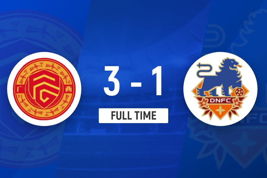 第57分钟,定南左路传中,埃里克斯头球扳回一球,定南赣联1-2广西平果。↓