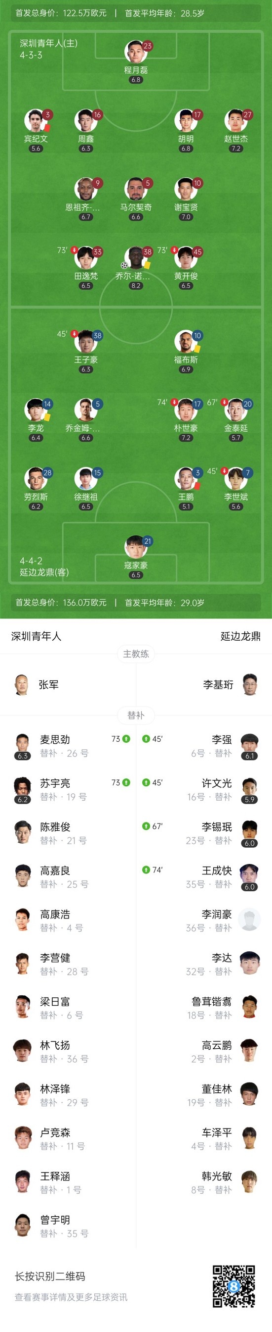 下半场补时10分钟,深圳青年人2-1延边龙鼎。