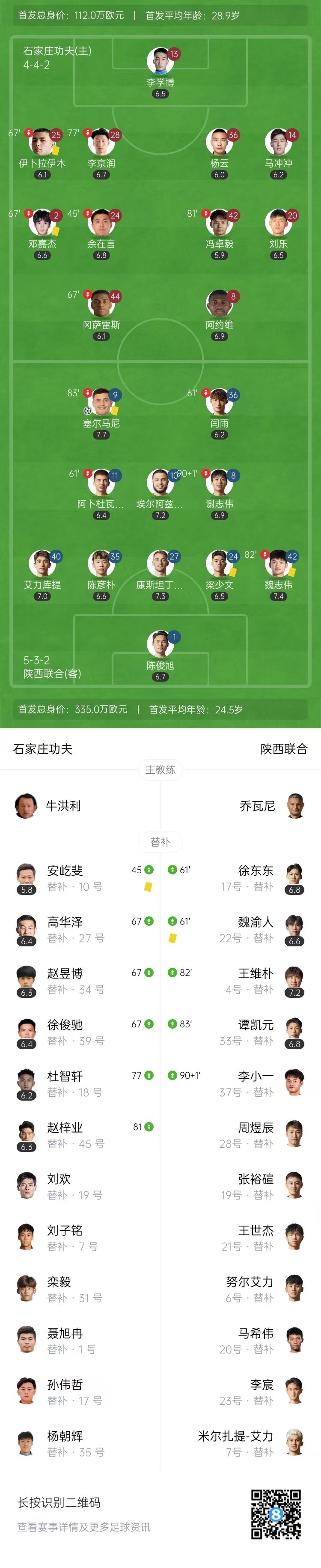 高华泽主罚点球命中扳平比分,石家庄功夫1-1陕西联合。↓