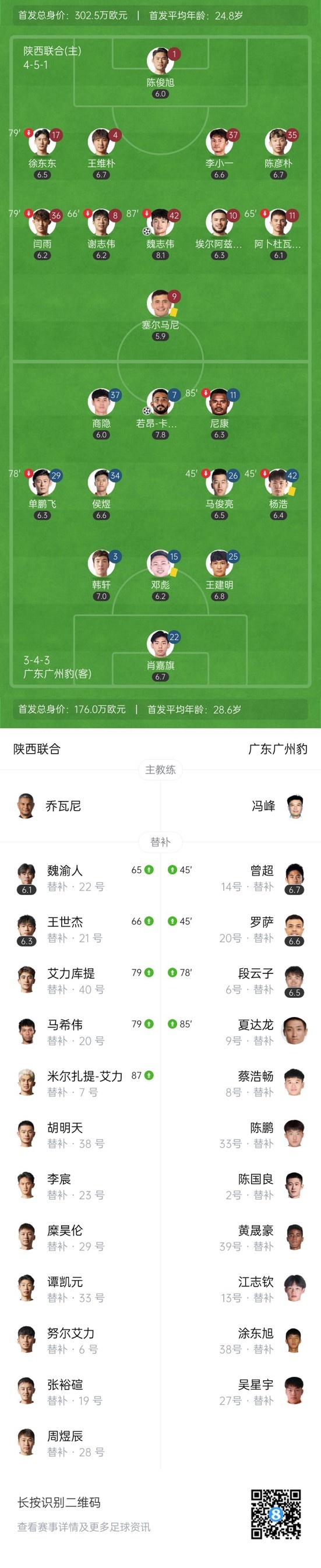 下半场补时9分钟,陕西联合1-2广东广州豹。