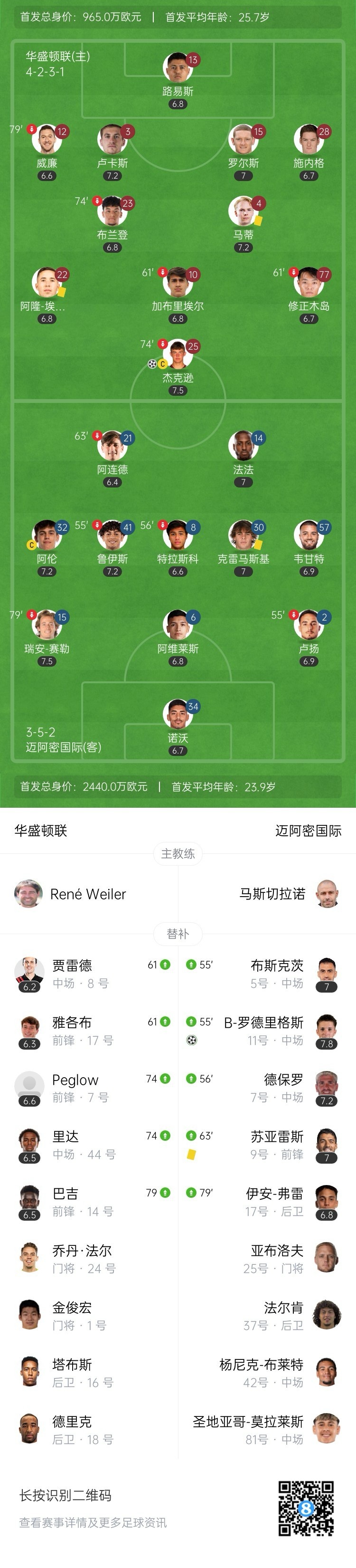 第78分钟,佩戈洛直塞,雅各布扣过防守球员后推射破门,但裁判示意犯规在先进球无效。↓