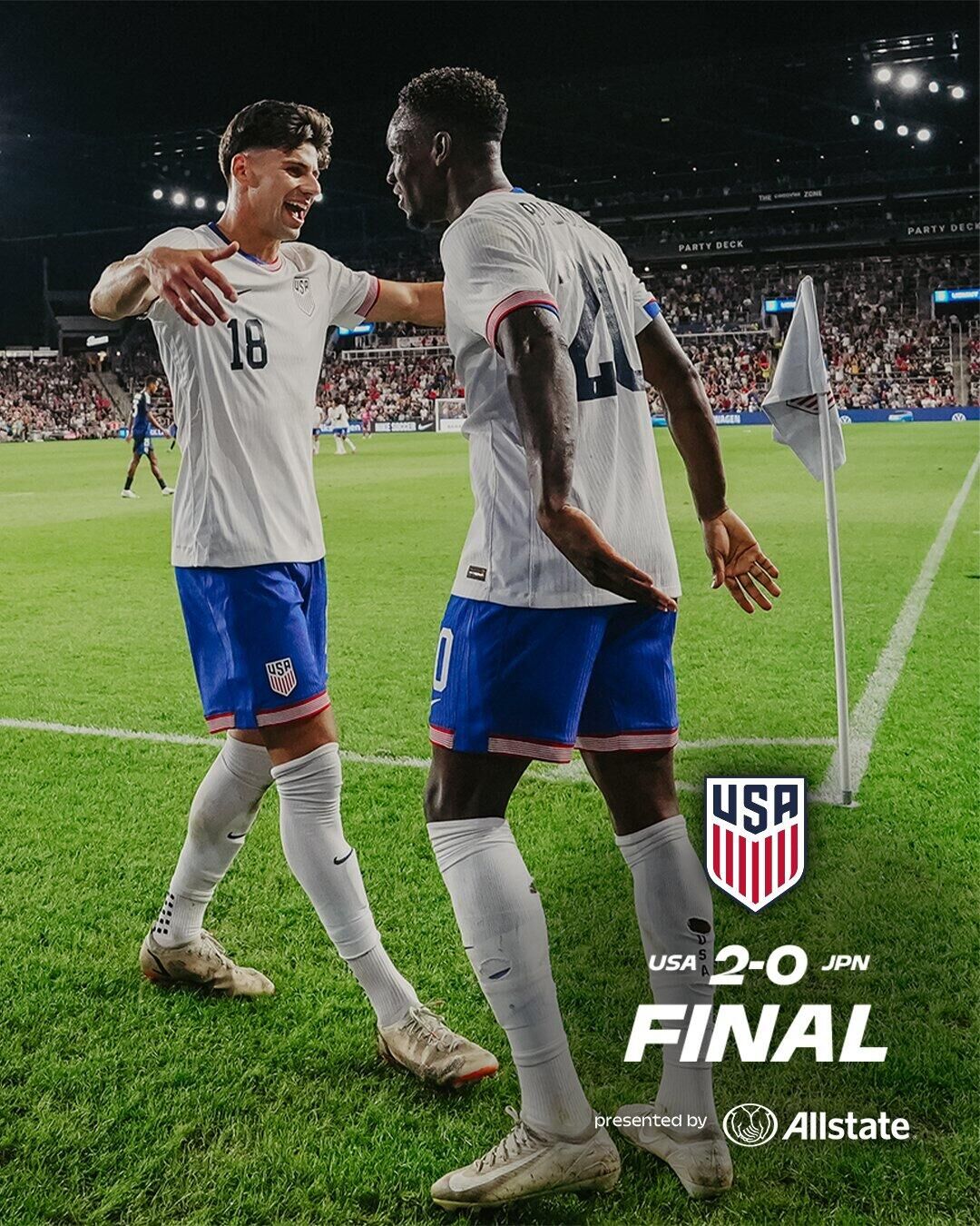 9月10日讯 北京时间9月10日早上7:30,一场友谊赛,美国坐镇箭头体育场对阵日本。上半场,阿夫斯坦助攻亚历杭德罗破门。下半场,巴洛贡再下一城,小川航基中框。全场结束,美国2-0日本。