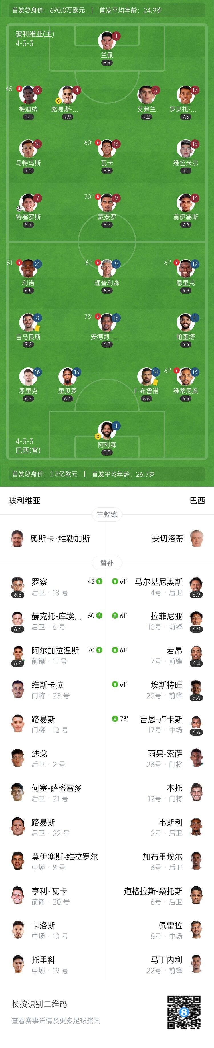 高原落败!巴西0-1收官仅排名南美第5,送玻利维亚晋级跨洲附加赛
