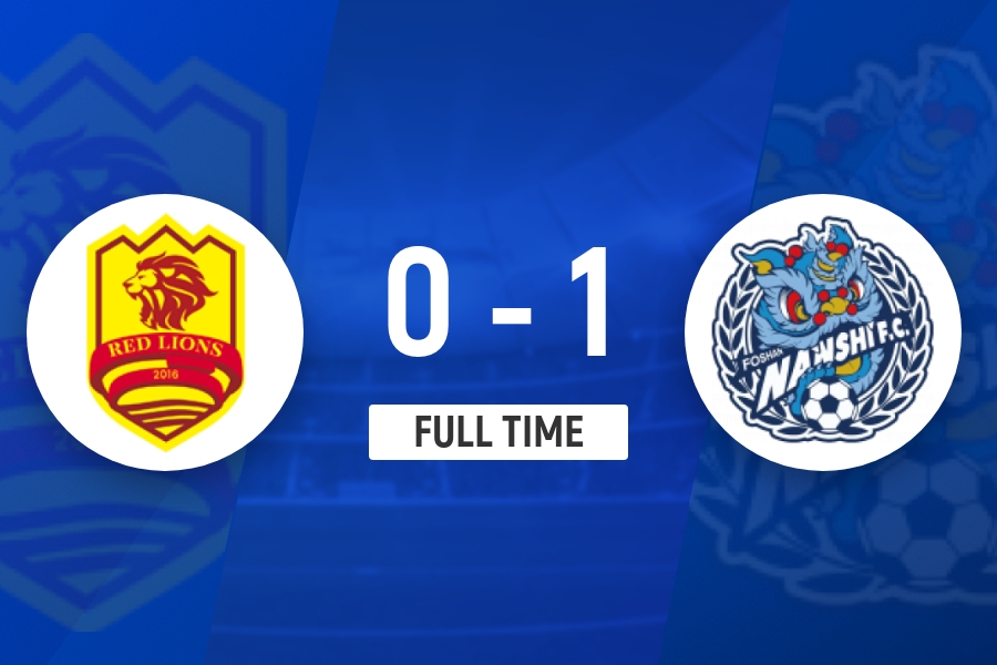 全场比赛结束,青岛红狮0-1不敌佛山南狮。