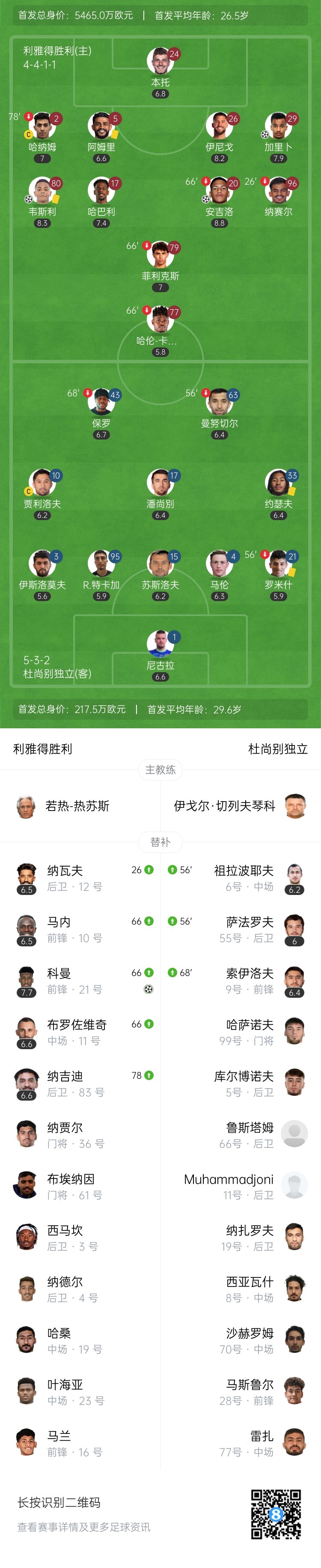【双方首发及换人信息】