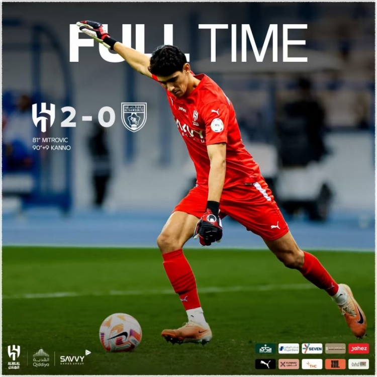 11月10日讯北京时间11月10日23点,沙特联第13轮,利雅得新月主场迎战布赖代合作。上半场,多萨里射门中柱,米特洛维奇破门,可惜犯规在先被吹;下半场,布努多次扑救力保球门不失,米特洛维奇头球破门打破僵局,补时阶段,卡努任意球破门杀死比赛!全场比赛结束,利雅得新月2-0布赖代合作!利雅得新月联赛6连胜,联赛13轮11胜2平保持不败!