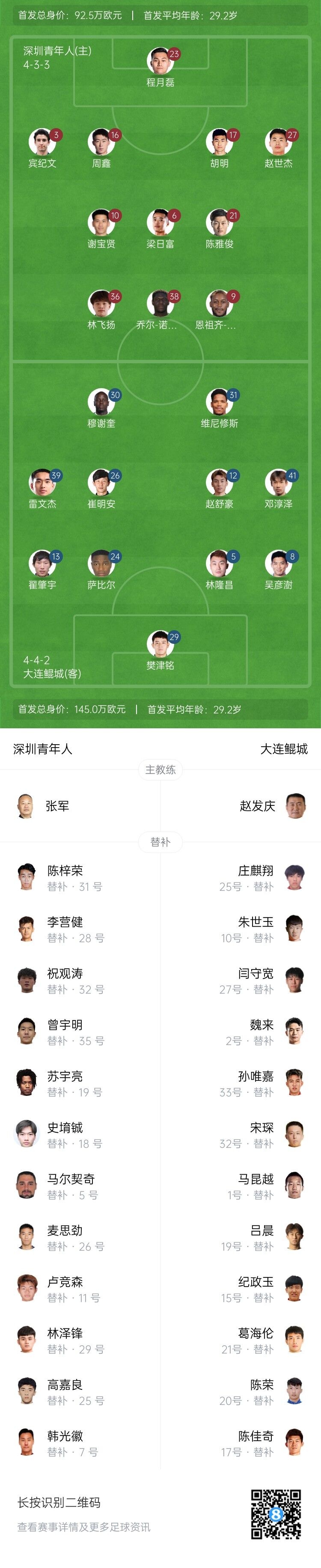 【双方首发以及替补信息】