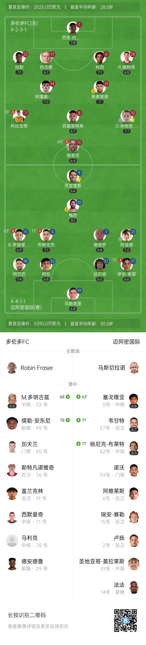 下半场补时4分钟,多伦多1-1迈阿密国际。