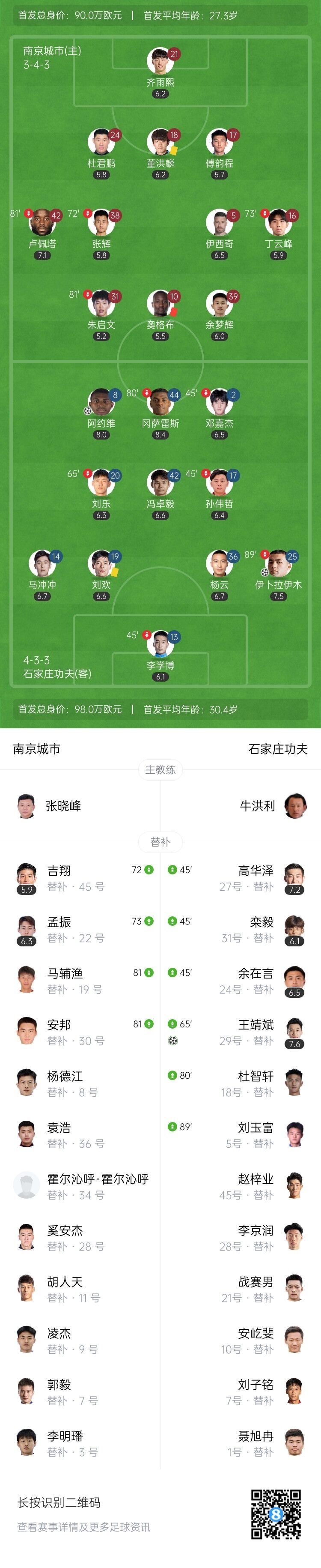伤停补时9分钟。全场比赛结束,南京城市1-3石家庄功夫。