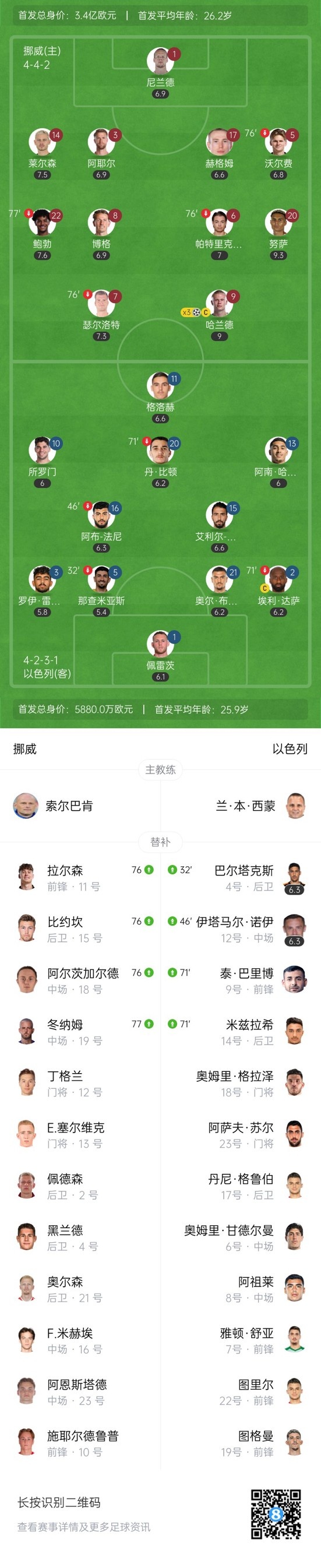 第26分钟,挪威再下一城!反击机会瑟尔洛特中路直塞给到哈兰德禁区低射破门,挪威2-0以色列。↓