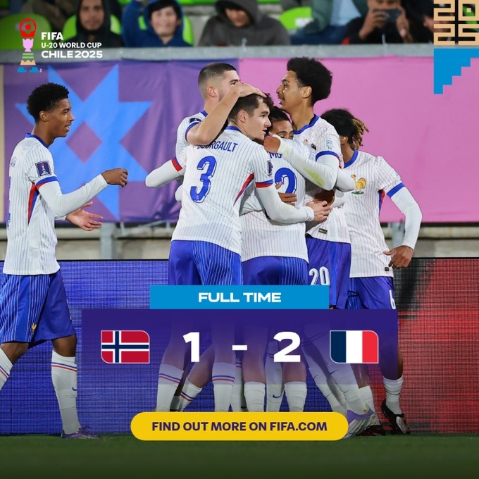 世青赛-法国2-1淘汰挪威晋级四强,半决赛将对阵摩洛哥