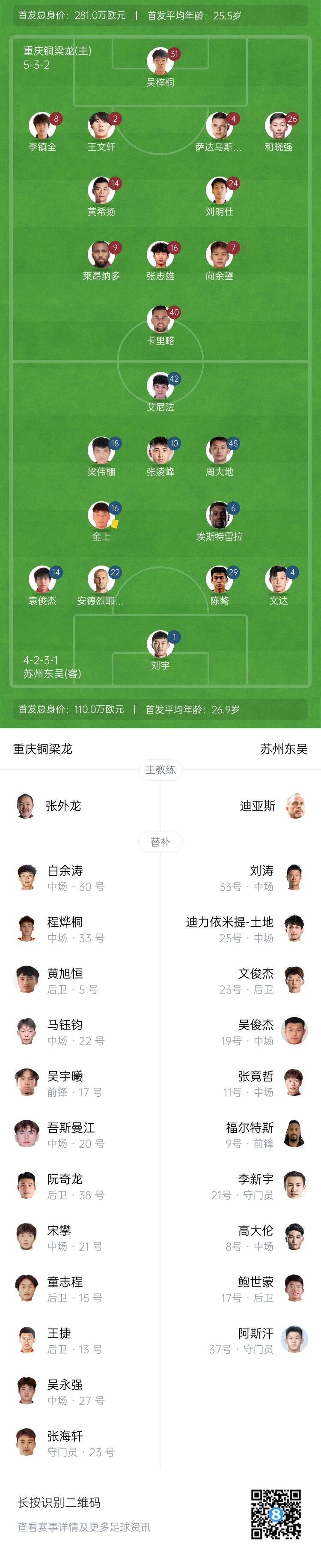 【双方首发以及替补信息】