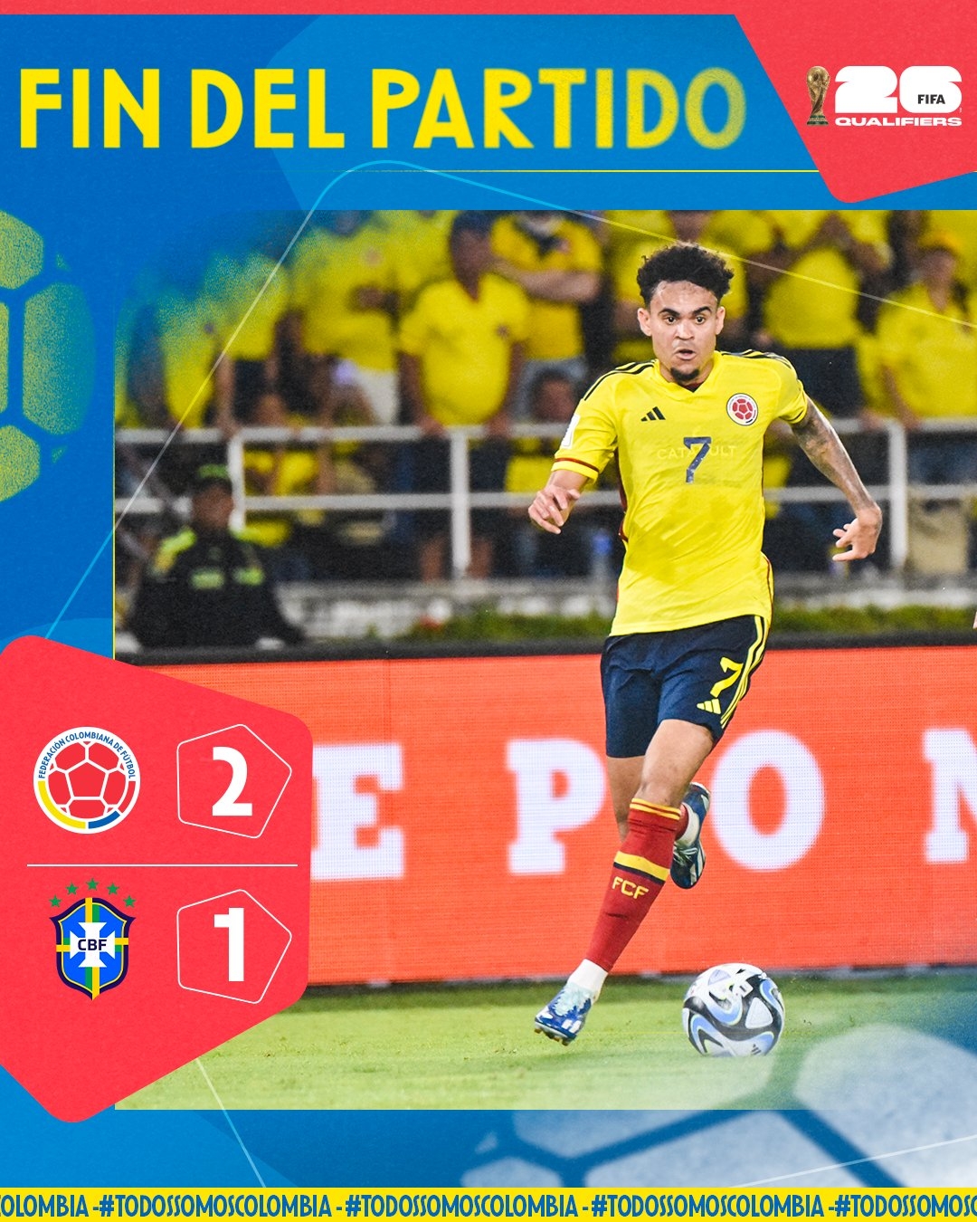 世预赛-迪亚斯双响马丁内利破门 巴西1-2哥伦比亚三场不胜