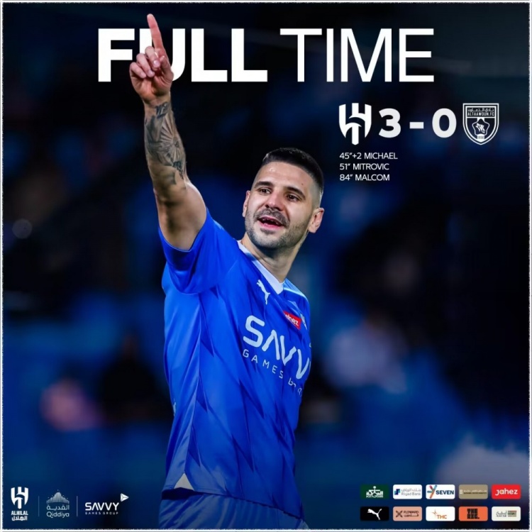 第47分钟,米特洛维奇头球破门,但经VAR回放后被判定迈克尔第一下打门已经越过门线,利雅得新月1-0布赖代合作。↓