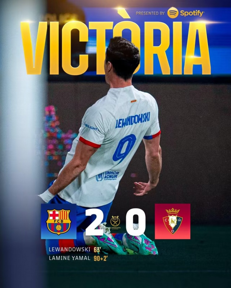 西超杯-巴萨2-0奥萨苏纳进决赛战皇马 莱万破门亚马尔建功