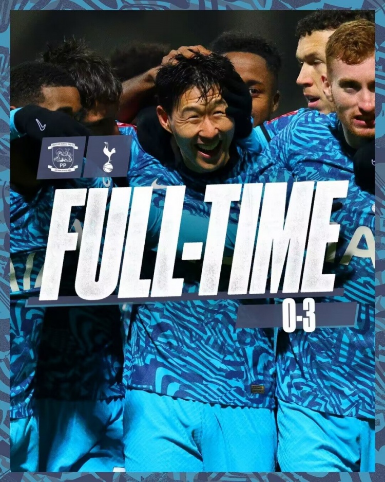 下半场补时3分钟,最终,热刺客场3-0普雷斯顿。