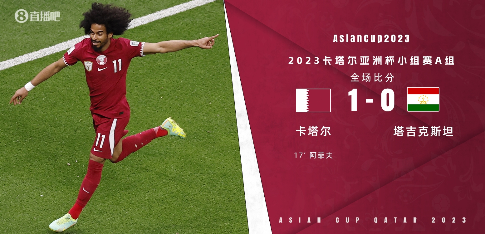 亚洲杯-卡塔尔1-0十人塔吉克斯坦头名出线 阿菲夫连场破门