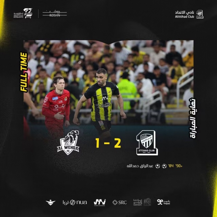 第94分钟,本泽马左路突破助攻哈姆达拉完成绝杀,吉达联合2-1麦加统一。↓