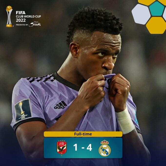 2月9日讯 北京时间2月9日凌晨3点整,2023年世俱杯半决赛展开角逐,皇家马德里对阵开罗国民。上半场维尼修斯打破僵局,下半场巴尔韦德扩大比分,卡马文加送点,莫德里奇失点,罗德里戈锁定胜局,阿里瓦斯替补建功。最终皇家马德里4-1战胜开罗国民,皇马进军世俱杯决赛,将与利雅得新月争夺冠军。