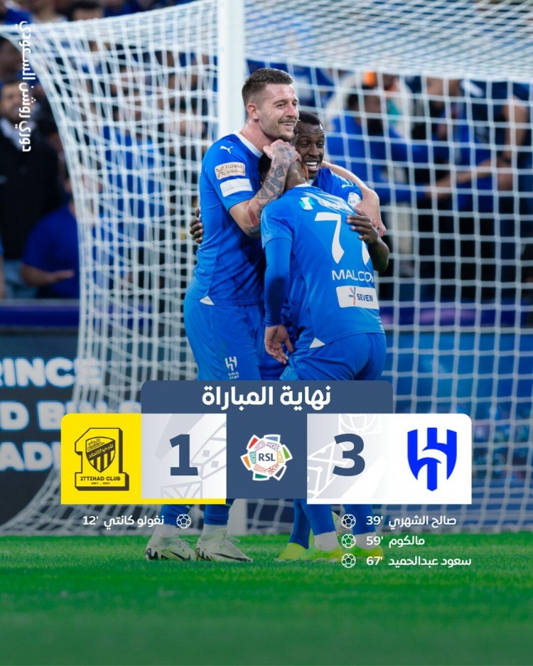 沙特联-利雅得新月3-1逆转吉达联合 9分领跑+各项赛事25连胜