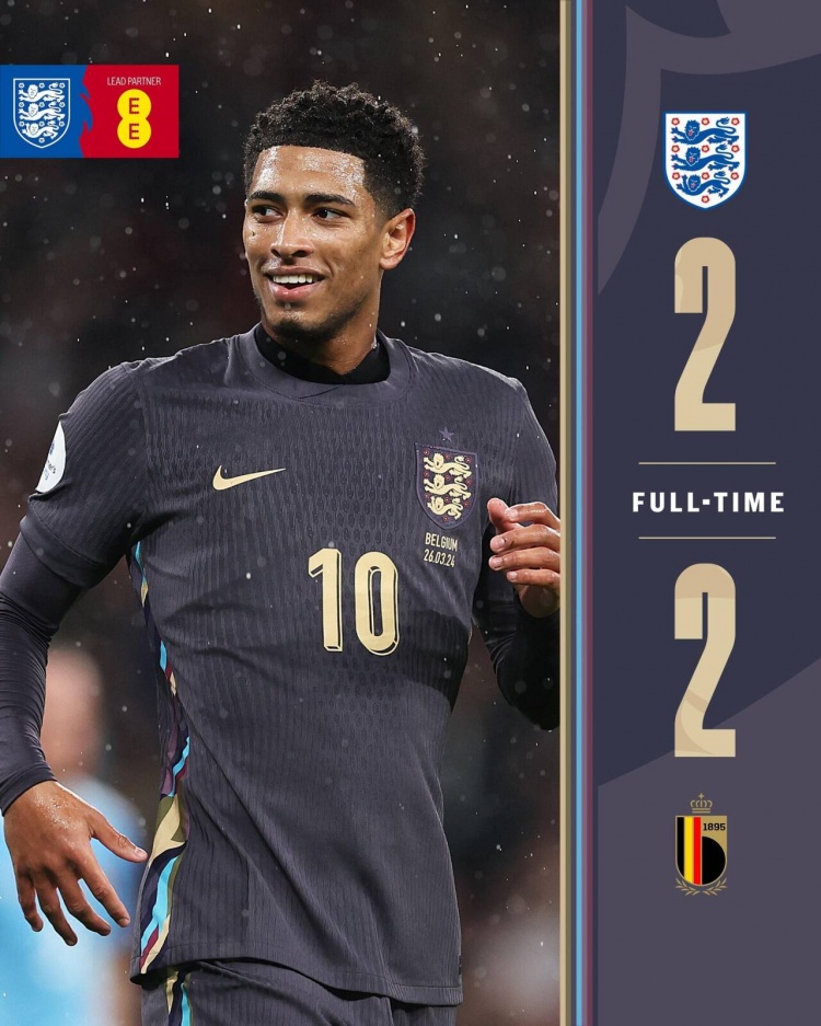 3月27日讯 北京时间3月27日凌晨3时45分,2024年国际足球友谊赛展开角逐,英格兰对阵比利时。上半场蒂莱曼斯梅开二度,伊万-托尼点射斩获国家队首球,皮克福德和邓克先后失误送礼,斯通斯伤退,下半场补时阶段贝林厄姆读秒绝平。最终英格兰2-2战平比利时,三狮军团友谊赛连续两场不胜。