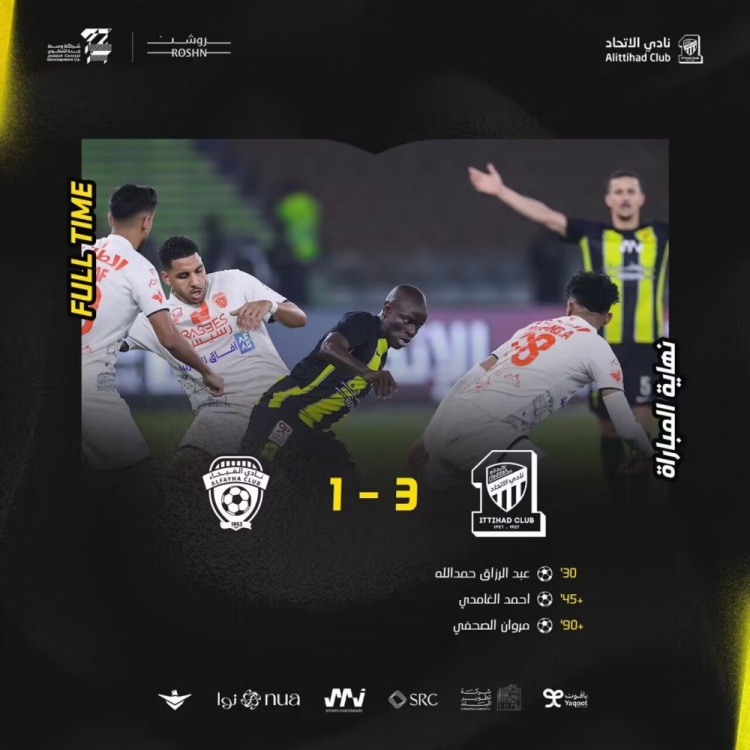 下半场补时5分钟,吉达联合3-1费哈。