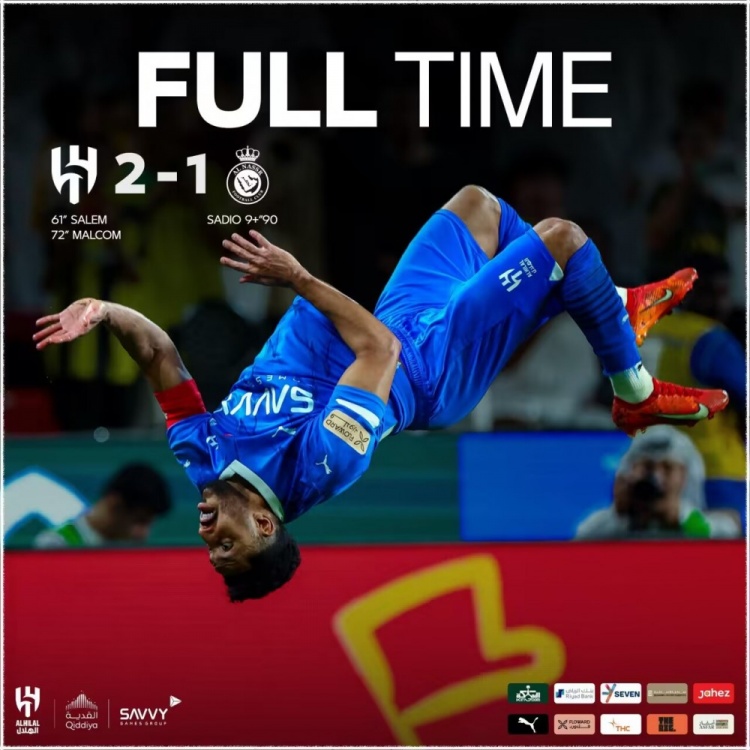 扩大比分!第72分钟,迈克尔右路传中落点精准,马尔科姆禁区内插上头球破门,利雅得新月2-0利雅得胜利!↓