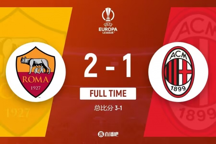 全场比赛结束,最终AC米兰1-2罗马。