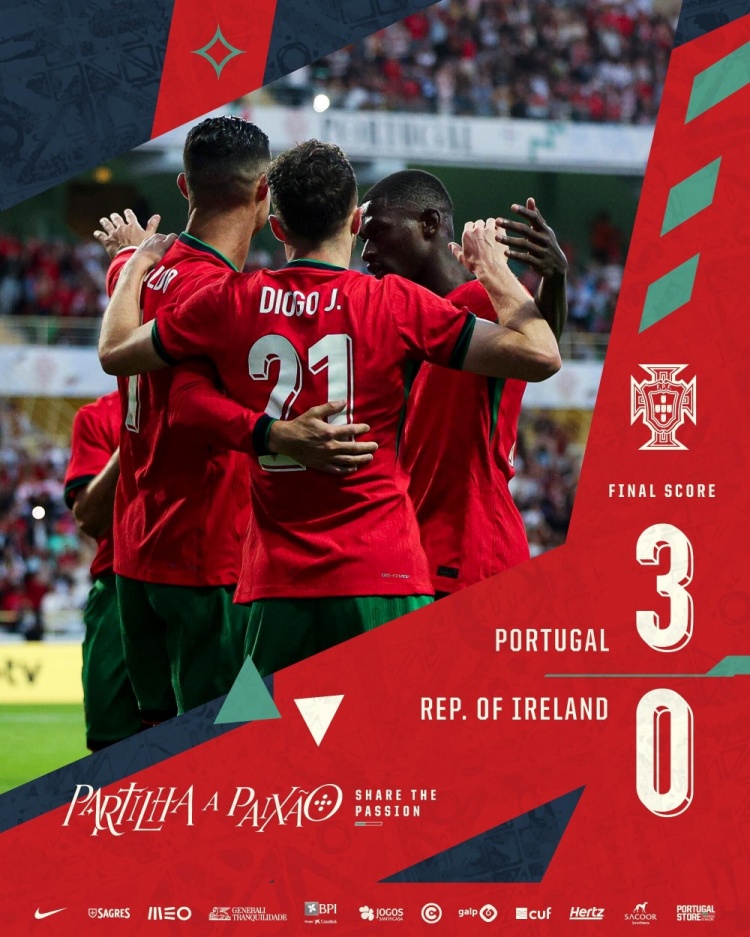 友谊赛-C罗双响+任意球中柱菲利克斯破门 葡萄牙3-0爱尔兰