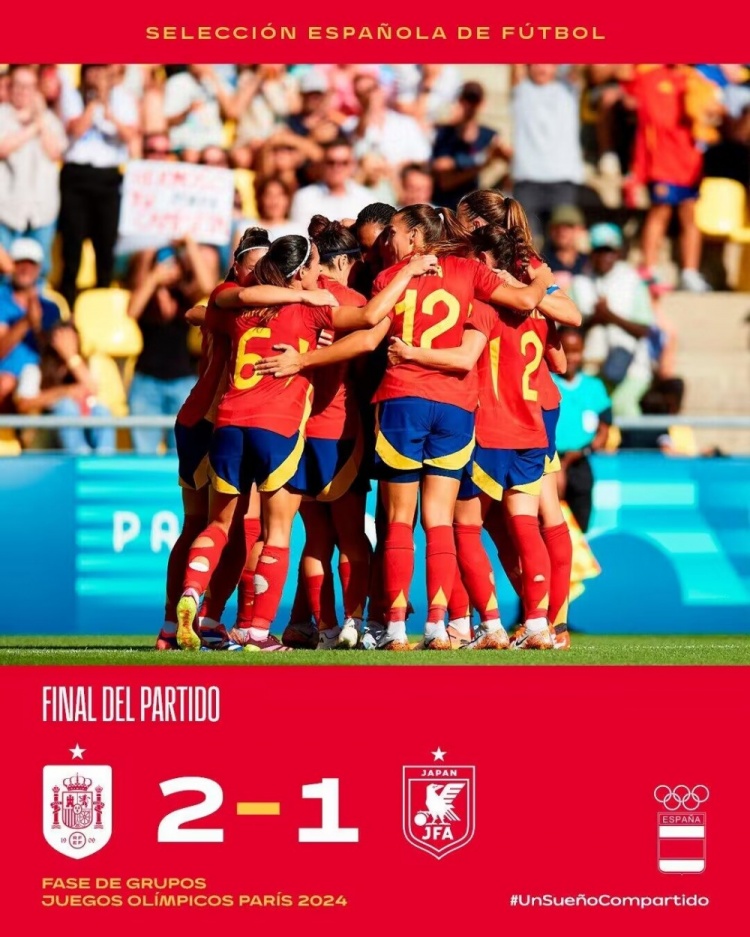 7月26日讯 北京时间7月25日23点,奥运女足小组赛C组第1轮,西班牙女足对阵日本女足。上半场,藤野青叶任意球直接破门,邦马蒂扳平比分。下半场,马里奥娜兜射打进制胜球。全场比赛结束,西班牙女足2-1日本女足。