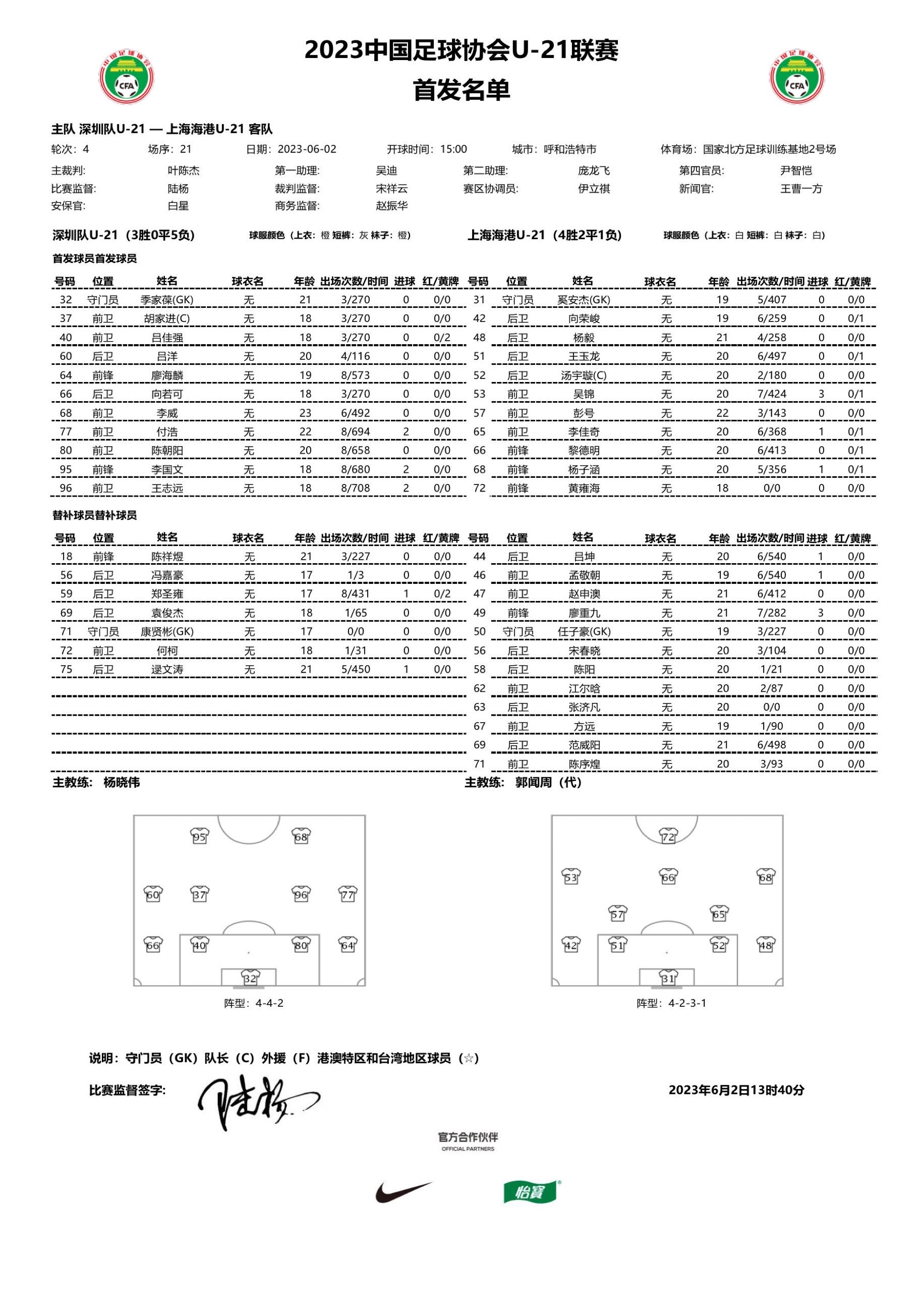 U21联赛:海港3-2绝杀深圳 两队下半场连入五球